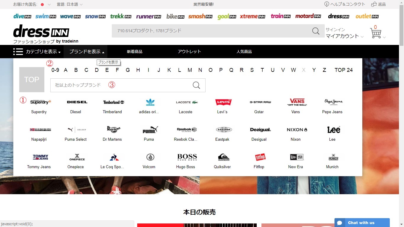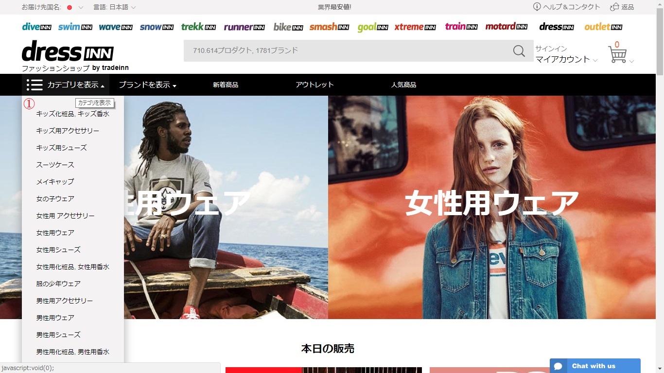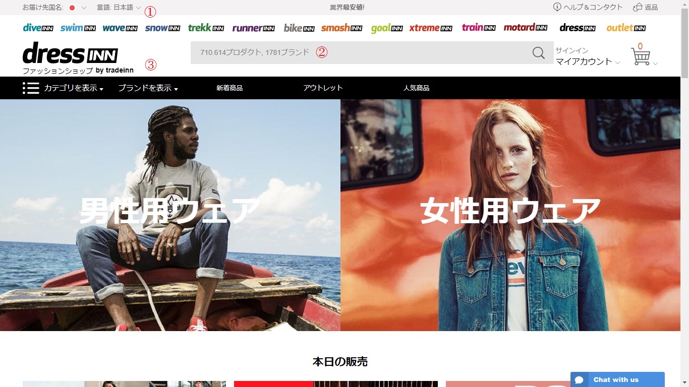 海外の大手通販サイトtradeINN(トレイドイン)が運営する、スペインを拠点としたカジュアルファッション専門のオンラインショップ「dressINN(ドレスイン)」。