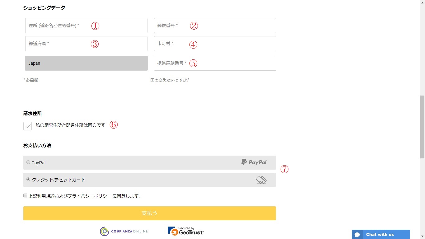 入力完了したら、「支払う」をクリックし、注文完了します。