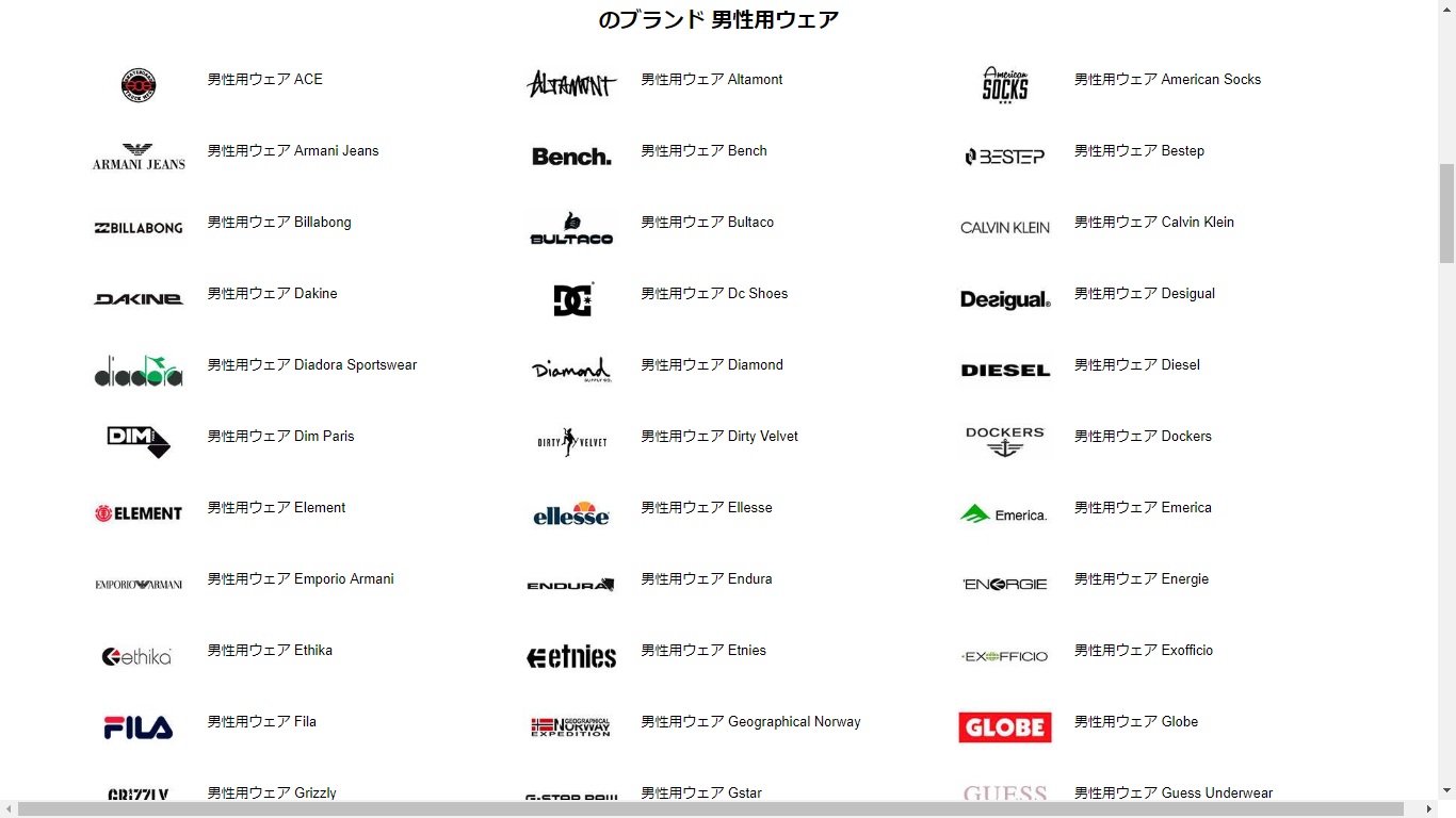 下にスクロールすると、男性用取り扱いブランドが出てきます。