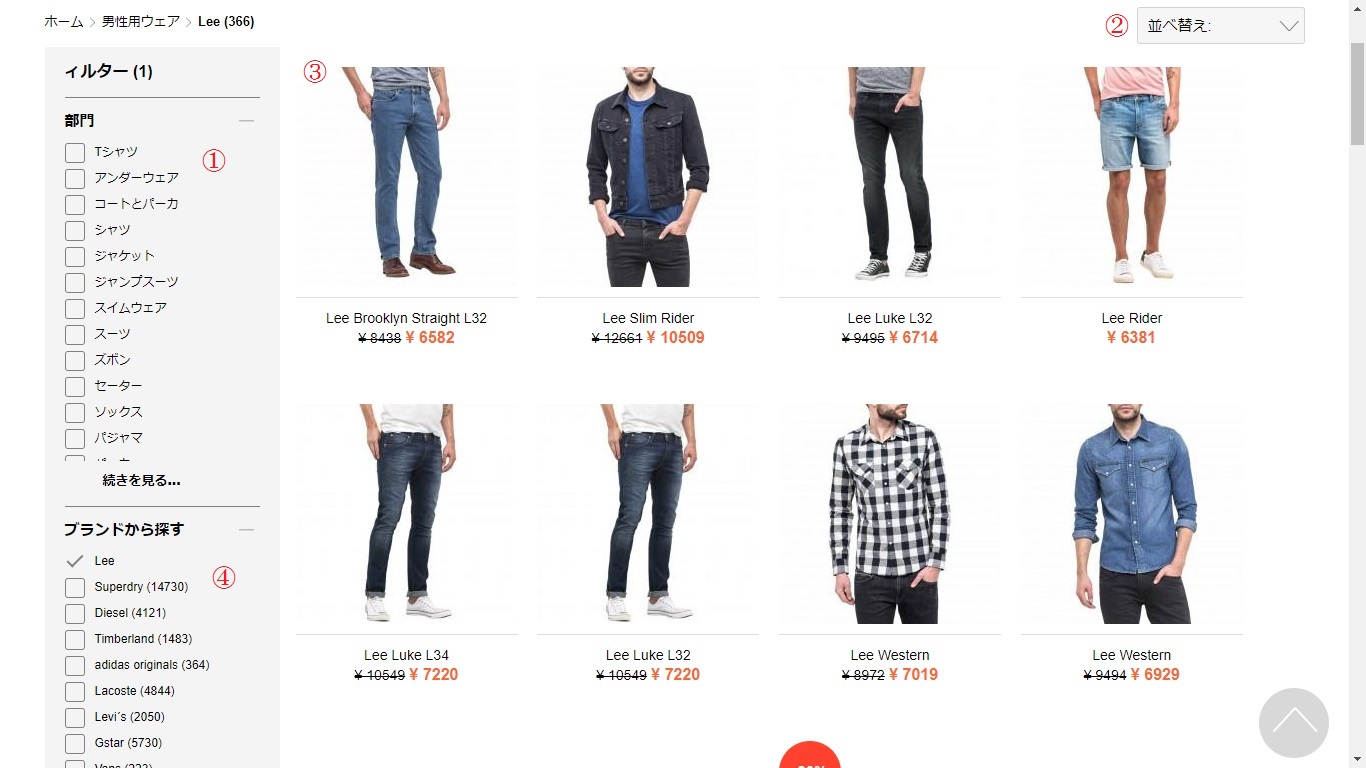 ここでは、デニムブランド「Lee(リー)」を選択してみます。