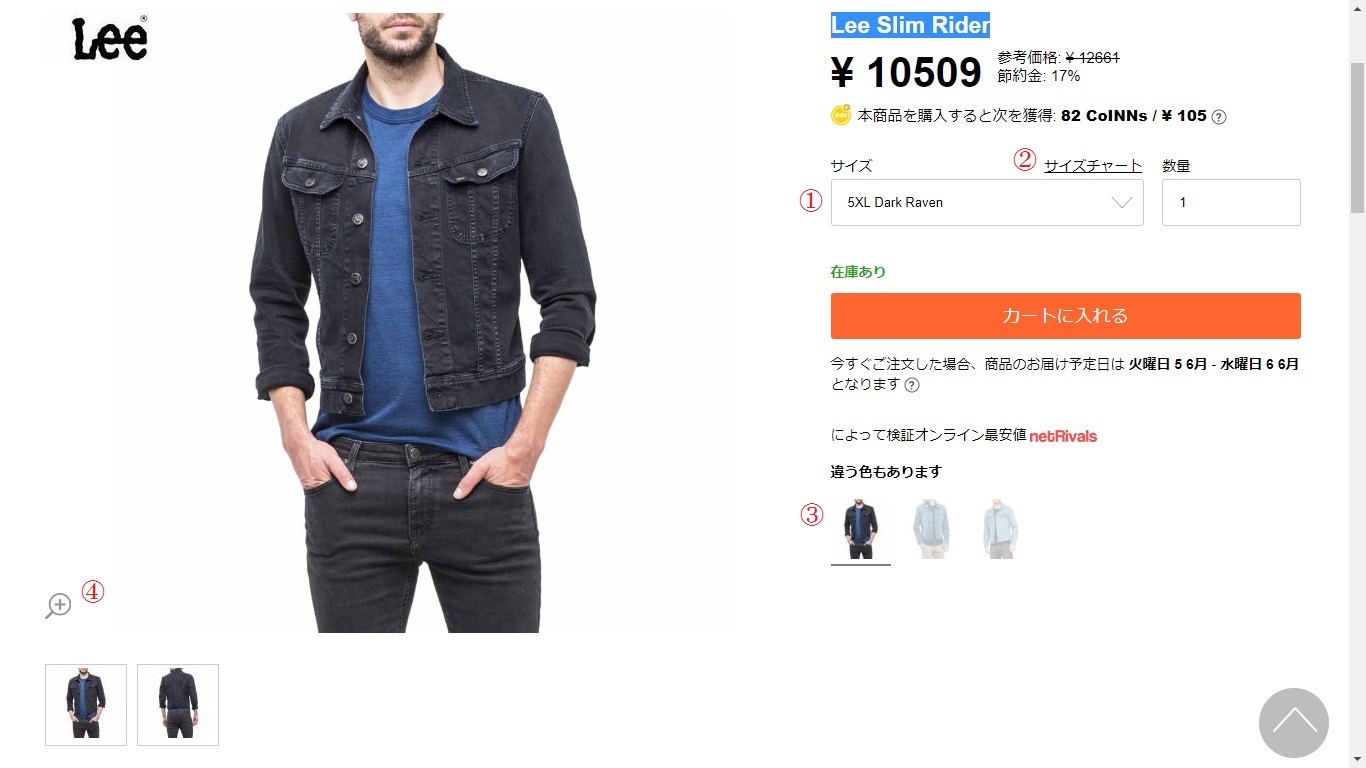 ここでは、先頭から2番目にあるデニムジャケット、「Lee Slim Rider(リー スリムライダー)」をクリックします。