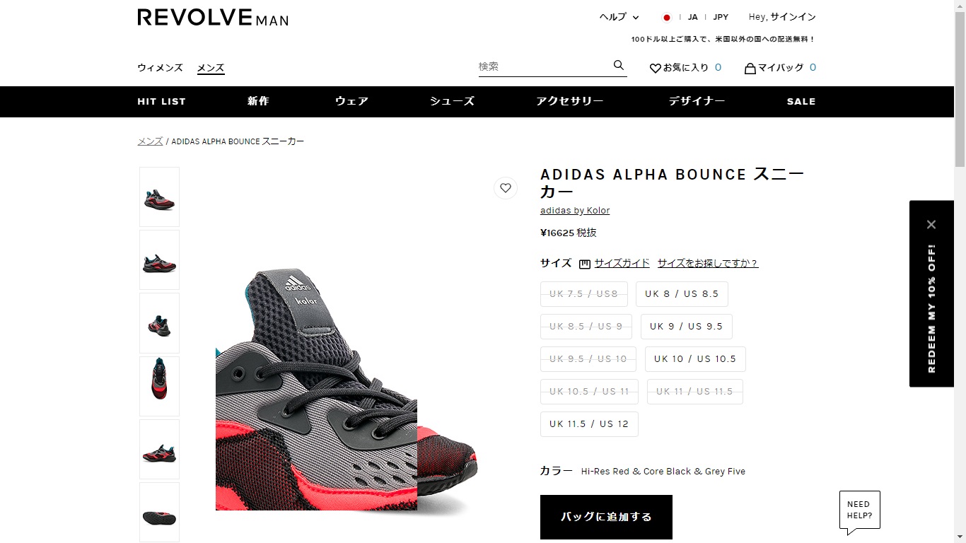 ここでは、一番左側にあるアディダスのランニングシューズ「ADIDAS ALPHA BOUNCE スニーカー(アディダス アルファバウンズ スニーカー)」をクリックします。