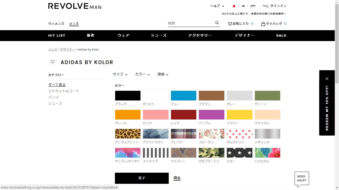 ここでは、日本人デザイナー阿部潤一が手掛けるパリコレ常連のファッションブランド「kolor」と、「adidas」のコラボ「adidas by Kolor(アディダス バイ カラー)」を選択してみます。