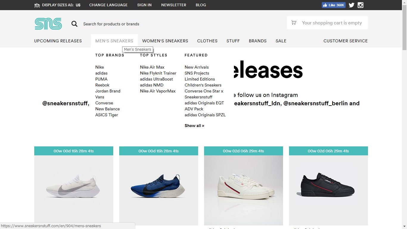Sneakersnstuff(スニーカーズンスタッフ)の公式通販サイトにアクセス