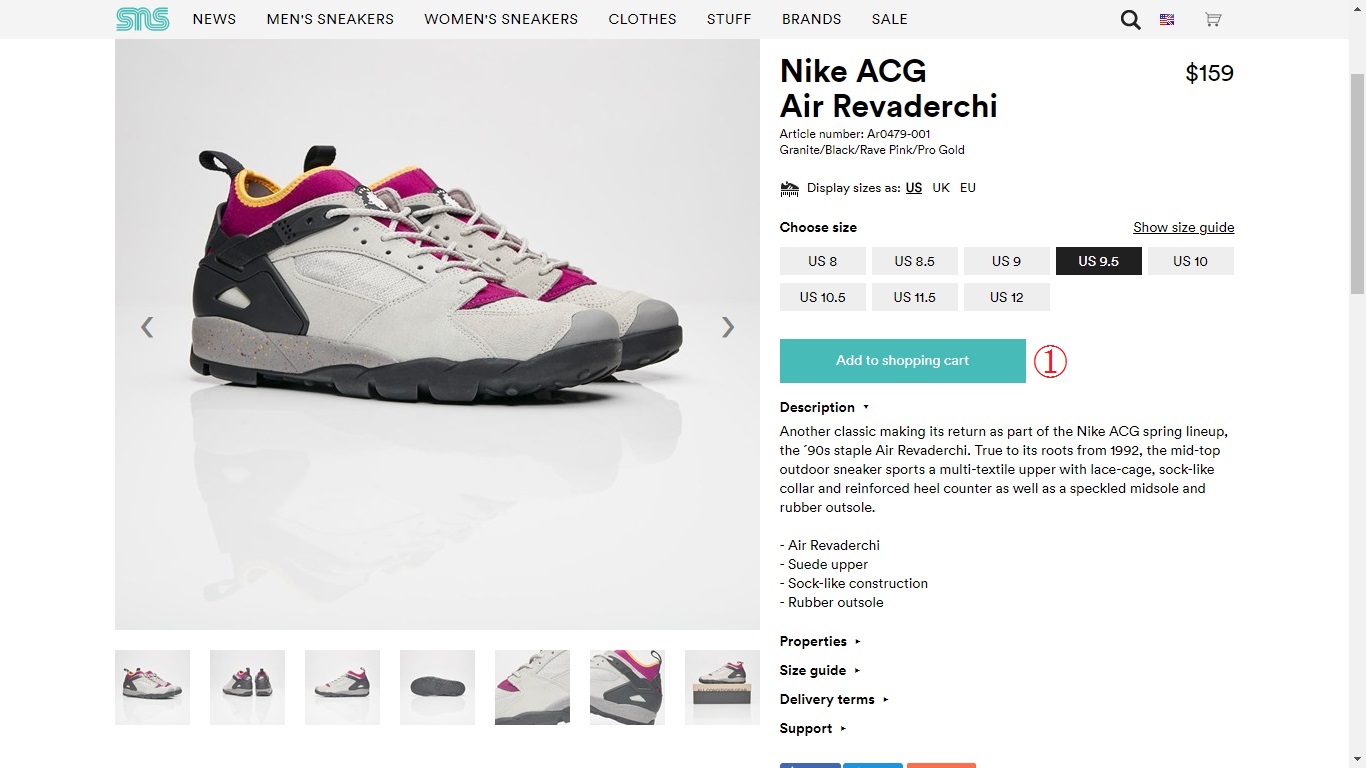 ここでは、右から2番目にある、国内でも入手困難なクロス・トレーニングシューズ「Nike Air Revaderchi(ナイキ・エアリバデルチ)」をクリックします。