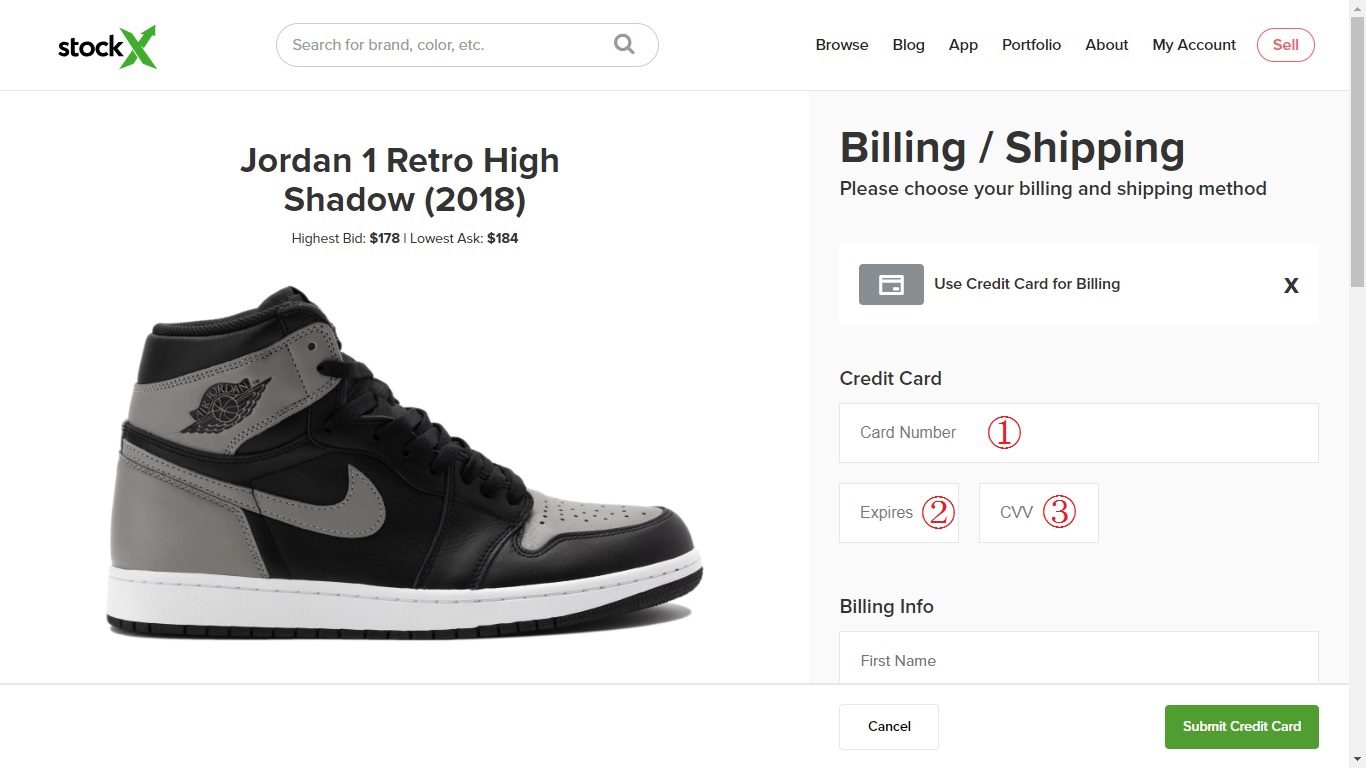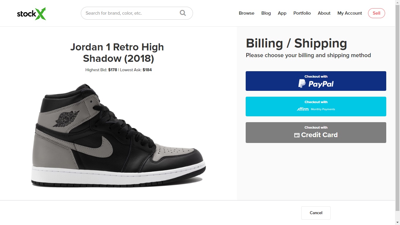 すると、StockXの支払い方法画面に移動します。