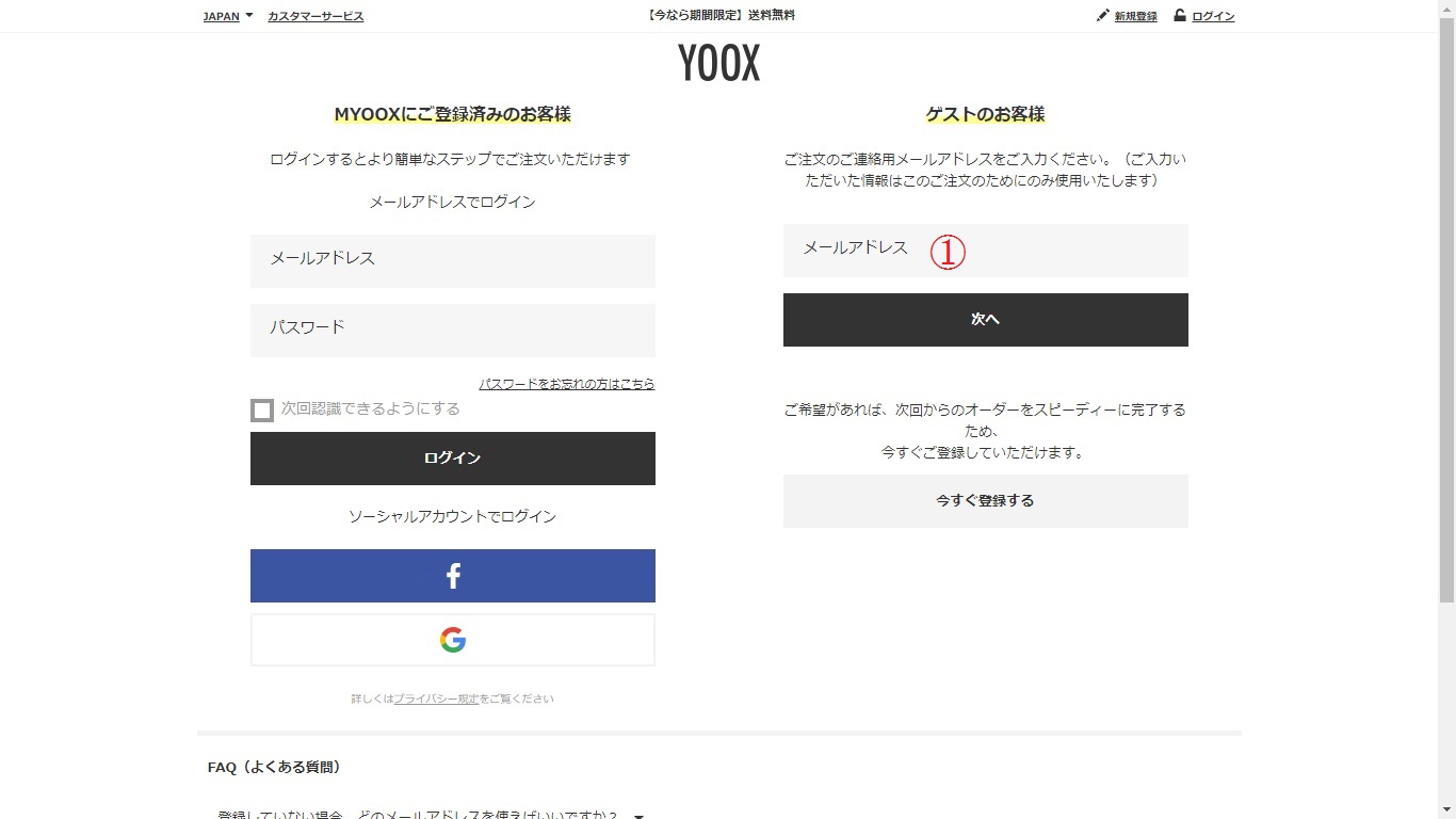 ここでは、「ゲストのお客様」の購入方法で行います。