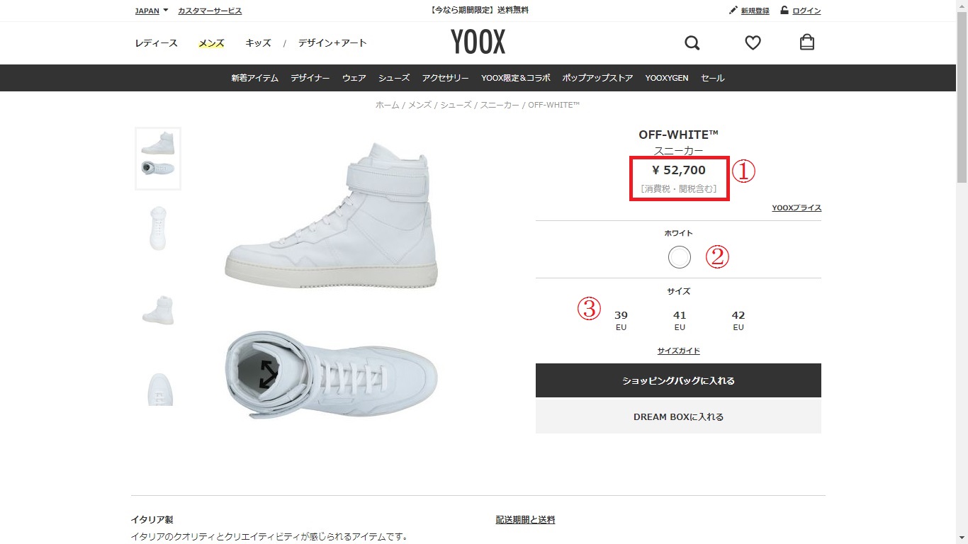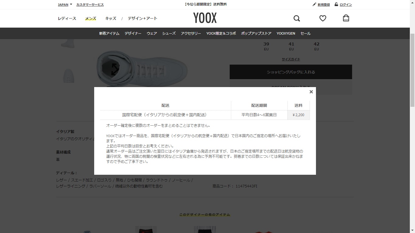 そんな、「YOOX(ユークス)」を利用しての商品の購入方法を、画像付きで分かりやすく説明致します。